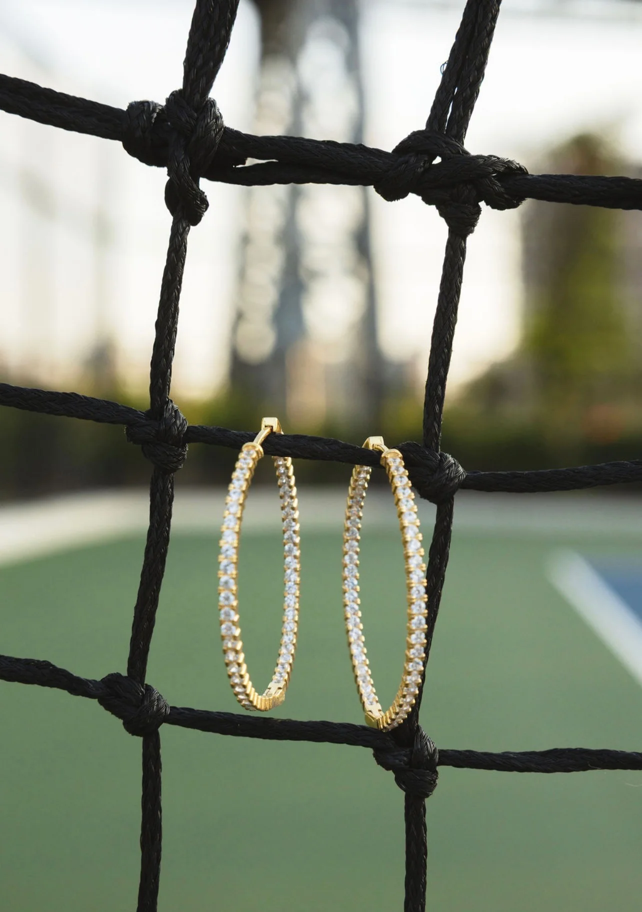 TheĀ Match Point HoopsĀ Are inspired by the elegance and energy of the tennis court, these hoops are designed to shine from day to night. Crafted with high-quality CZ diamonds, they capture the brilliance of a perfect serve and the finesse of a well-played match. Whether you're court side or city-bound, these hoops bring a sporty edge to your stack.